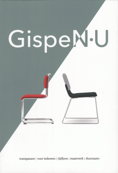 GispeNU, transparant | voor iedereen | tijdloos | maatwerk | duurzaam is de titel. De vijf thema’s uit de titel worden vaak verbonden aan het werk van Gispen. Dit boek onderzoekt in hoeverre dat terecht is en wat de meningen van professionals daarover zijn. GispeNU geeft per thema bijpassende voorbeelden van Gispen-meubelen en -lampen door de tijd heen. Vervolgens wordt in een essay dieper ingegaan op een bepaald onderdeel van dat thema om af te sluiten met een interview van iemand die op het professionele vlak te maken heeft met Gispenmeubelen. Nieuwe inzichten, tegendraadse meningen, een breder blikveld, dit boek toont een andere kijk op ruim 100 jaar Gispen.